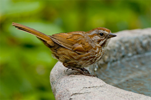 Even the smallest garden can offer the luxury of a pond or birdbath, which should be close to prickly or thorny shrubs and trees so the visiting birds can quickly find shelter from predators. Keep the water clean and top it up regularly to ensure the birds can drop in for a splash at any time. On hot days, your birds will truly rely on the water you provide.