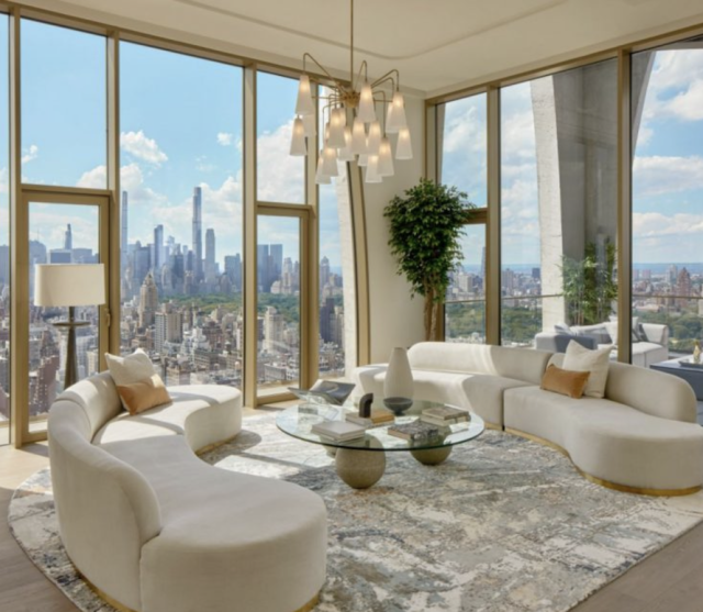 Overlooking New York’s Central Park, the three-level penthouse sits at the top of the tallest tower north of 72nd Street – fitting perhaps for the fictional mega-wealthy patriarch who so thoroughly dominated his children’s lives.