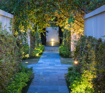 Placement is an important element. Ideally, we don’t want to see the actual light source, but rather the effect on its surroundings, a revealing of the exterior ‘architecture’ of the garden at night or an inviting passage through that garden.